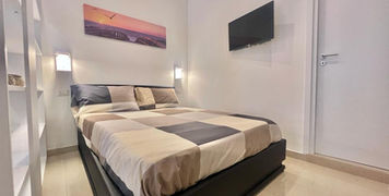 It has: French double bed (140x190), sofa bed (144x199), wifi, wardrobe, washer dryer, equipped kitchen, oven, toaster, blender, microwave, kettle, bathroom, 2 smart TVs, table, towels, sheets, balcony with table overlooking the street.